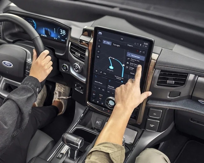 Plan routes, stops and track your charge right from your F-150 Lightning touchscreen with Ford Power My Trip.