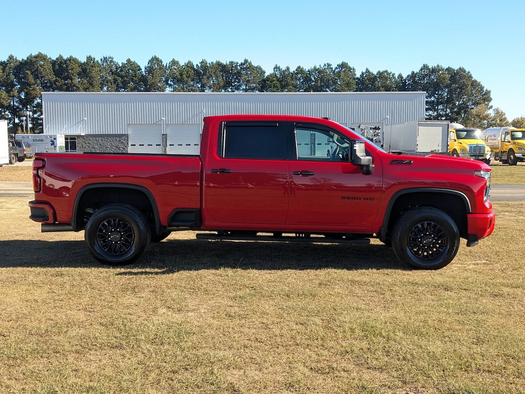 Red Hot 2024 Chevrolet Silverado 2500HD LTZ 4WD 10-Speed Automatic Duramax 6.6L V8 Turbodiesel One Owner, Clean history-No accidents!, TEXT US @ 252-302-0026, Silverado 2500HD LTZ, 4D Crew Cab, Duramax 6.6L V8 Turbodiesel, 10-Speed Automatic, 4WD, Red Hot, Jet Black Leather, 120-Volt Bed Mounted Power Outlet, 120-Volt Interior Power Outlet, 15" Diagonal Multicolor Head-Up Display, 170 Amp Alternator, 2 Charge/Data USB Ports Inside Center Console, 4" Round Black Assist Steps (LPO), 6-Speaker Audio System, Adaptive Cruise Control, Auto-Dimming Inside Rear-View Mirror, Bed View Camera w/2 Trailer Camera Provisions, Black Beltline Moldings, Black Chevytec Spray-On Bedliner, Bluetooth® For Phone, Body-Color Front Bumper, Body-Color Rear Bumper, BOSE Premium 7-Speaker Sound System, Chevrolet Connected Access Capable, Chrome Door Handles, Chrome Mirror Caps, Color-Keyed Carpeting Floor Covering, Compass, Deep-Tinted Glass, Electric Rear-Window Defogger, Electronic Cruise Control w/Set & Resume Speed, EZ Lift Power Lock & Release Tailgate, Floor-Mounted Center Console, Front Bucket Seats, Front LED Fog Lamps, Front Rain-Sensing Wipers, Front Rubberized Vinyl Floor Mats, Gooseneck/5th Wheel Prep Package, HD Rear Vision Camera, HD Surround Vision, Heated 2nd Row Outboard Seats, Heated Steering Wheel, High Gloss Black Door Handles, High Gloss Black Mirror Caps, Hill Descent Control, Hitch Guidance w/Hitch View, In-Vehicle Trailering App System, Keyless Open & Start, LED Cargo Area Lighting, LTZ Convenience Package, LTZ Convenience Package II, LTZ Plus Package, Manual Tilt & Telescoping Steering Column, Off-Road Suspension, OnStar & Chevrolet Connected Services Capable, Power Door Locks, Power Front Windows w/Driver Express Up/Down, Power Front Windows w/Passenger Express Up/Down, Power Rear Windows w/Express Down, Power Sliding Rear Window w/Defogger, Preferred Equipment Group 1LZ, Push Button Start, Rear Camera Mirror, Rear Cross Traffic Alert, Rear Rubberized Vinyl Floor Mats, Rear Wheelhouse Liners, Remote Vehicle Starter System, Safety Alert Seat, Safety Package, SiriusXM w/360L, Standard Tailgate, Steering Wheel Audio Controls, Suspension Package, Technology Package, Trailer Camera Provisions, Trailer Side Blind Zone Alert, Ultrasonic Front & Rear Park Assist, Unauthorized Entry Theft-Deterrent System, Universal Home Remote, Up-Level Rear Seat w/Storage Package, Ventilated Driver & Front Passenger Seats, Wheels: 18" High Gloss Black Aluminum, Wi-Fi Hotspot Capable, Wireless Charging, Wireless Phone Projection, Wrapped Steering Wheel, Z71 Off-Road Package, Z71 Sport Edition.